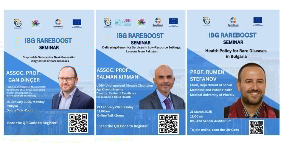 | | | In the first three months of 2025, we had the privilege of hosting distinguished speakers from the rare disease scientific community under the RareBoost Seminar Series. First, Assoc. Prof. Can Dinçer shared insights on Disposable Sensors under the theme of Advanced Technologies in Rare Diseases Months events. We then learned from the incredible effort of Assoc. Prof. Salman Kirmani for rare disease research in Pakistan. Last but not least, Prof. Rumen Stefanov presented Bulgaria’s current approach to rare disease policies. | | |